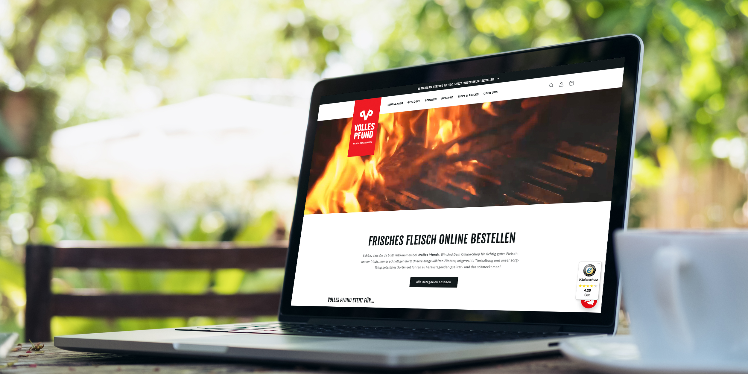 Wer kauft eigentlich online Steaks? Na, Männer, die chronisch unterfleischt sind und sich mit breitem Schultern dem Tofu-und Gemüsetrend am Grill entgegenstellen. Grillen ist schließlich ´was für echte Kerle, oder? In diesem Sinne entwickelten wir die Corporate Identity für „Volles Pfund“, dem Online-Versand für feinstes Fleisch.